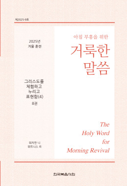 1.이 책은 믿는 이들이 말씀 안에 계신 주님과 함께하는 매일의 아침 부흥 시간을 발전시키고, 2025년 12월 22일부터 27일까지 미국의 캘리포니아주 애너하임에서 열린 “그리스도를 체험하고 누리고 표현함(4)”에 관한 겨울 훈련 내용을 부분적으로 복습할 수 있도록 만들어졌습니다. 말씀 안에 계신 주님을 친밀하게 접촉함으로 믿는 이들은 생명과 진리로 조성되며, 그리스도의 몸의 건축을 위해 교회 집회에서 신언할 수 있도록 장비됩니다.