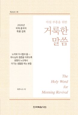 1. 이 책은 믿는 이들이 말씀 안에 계신 주님과 함께하는 매일의 아침 부흥 시간을 발전시키고, 2026년 2월 13일부터 15일까지 미국의 캘리포니아주 애너하임에서 열린 “노아와 다니엘과 욥 ? 하나님의 경륜을 이루도록 생명의 노선에서 이기는 생활을 하는 본들”에 관한 국제 중국어 특별 집회 내용을 부분적으로 복습할 수 있도록 만들어졌습니다. 말씀 안에 계신 주님을 친밀하게 접촉함으로 믿는 이들은 생명과 진리로 조성되며, 그리스도의 몸의 건축을 위해 교회 집회에서 신언할 수 있도록 장비됩니다.